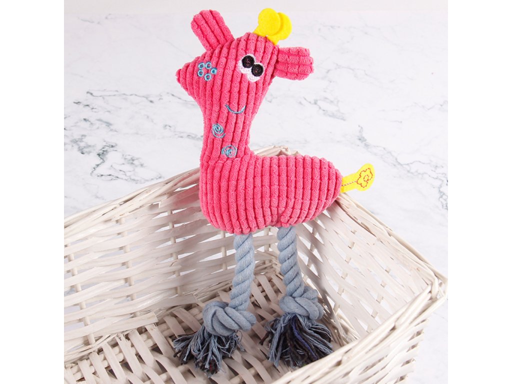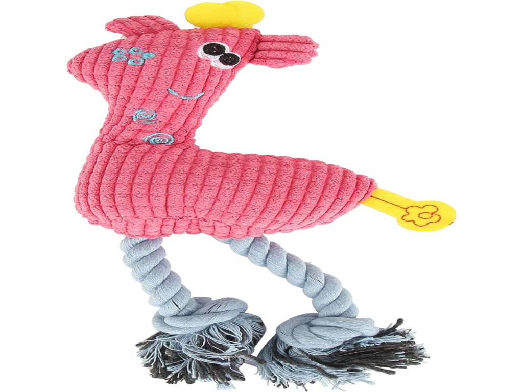 Mäkká plyšová pískacia hračka s bavlnenými lanovými nohami – ideálna na zábavu aj jemné preťahovanie.